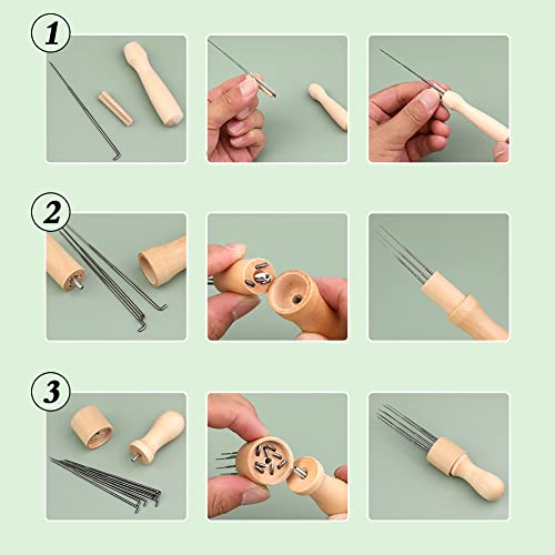 Design speciale: lo strumento per infeltrire include uno strumento con manico in legno da 1/3/8 ago, è possibile sostituire aghi di tutte le dimensioni, l'installazione e la rimozione sono molto semplici e convenienti, lo strumento per infeltrire a 8 aghi può installare 1-8 aghi per infeltrimento contemporaneamente, lo strumento per infeltrire a 3 aghi può installare 1-3 aghi per infeltrire contemporaneamente, può essere assemblato in base alle proprie esigenze.