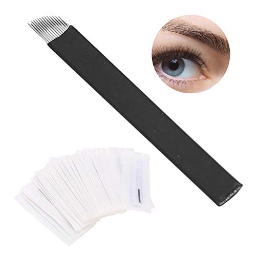 Aghi per microblading, aghi per trucco permanente per sopracciglio manuale 50pcs Micro lama per tatuaggio 7 pin/9 pin/12 pin/12 pin/12 pin/14 pin/14U aghi, kit di microblading(14 pin)
