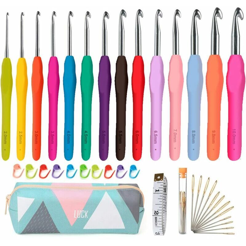 Aghi per uncinetto 39 PCS Uncinetti per maglieria in alluminio con manico in gomma per principianti o lavori occasionali (2-10 mm) -Design ergonomico, molto comodo da tenere, può ridurre o eliminare il dolore alla mano, al polso o alle dita. Kit di aghi a gancio perfetto per l'artrite. -Un set completo di 39 pezzi, 14 uncini di diverse dimensioni: 2 mm, 2,5 mm, 3 mm, 3, 5 mm, 4 mm, 4,5 mm, 5 mm, 5,5 mm, 6 mm, 6,5 mm, 7 mm, 8 mm, 9 mm, 10 mm. -Il set di ganci è perfetto per realizzare coperte, vestiti per animali domestici, cappelli, asciugamani, guanti. È un regalo utile ideale per mamma, bambini, figlie, studenti, principianti, ecc. Contenuto della confezione: 14 ganci con impugnatura in gomma 12 x ferri da maglia 10 x segnapunti maglia (colori casuali). 1 x tubo. 1 x metro a nastro 1 x x custodia