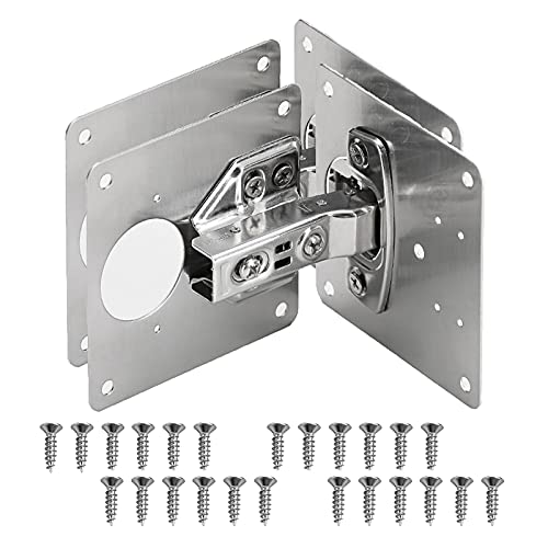 AGIGU Piastra di riparazione della cerniera dell'armadio - Staffe in acciaio inossidabile con vite di fissaggio, kit di riparazione della cerniera nascosta per mobili di armadietti, 4 pezzi