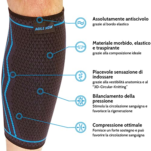 Agile Now - Polpaccera set da 2 stabilizza & allevia i polpacci durante ogni movimento - Compressione del polpaccio unisex - Bende a compressione antiscivolo e traspiranti (L | Blu)