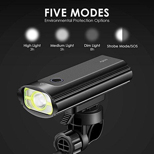 Aglaia Luce Bici Anteriore Ricaricabile, Fanale LED per Bicicletta Impermeabile con 4-5 Modalità e Sensore di Luce per Sicurezza di Ciclismo Notturno