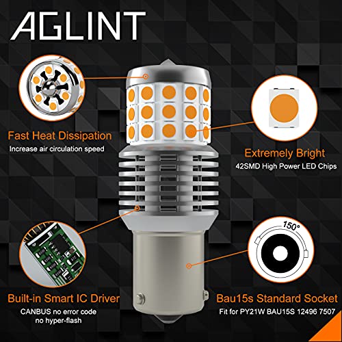 AGLINT BAU15S Lampadine LED 42SMD Estremamente Luminoso 12V 24V PY21W 1056 7507 Auto Lampadina Luci di Direzione Ambra 2 Pezzi