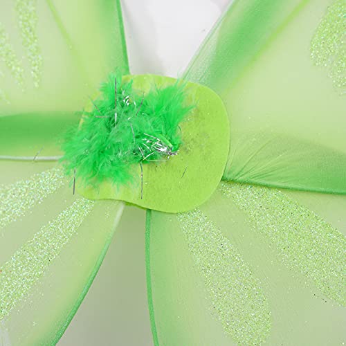 Agoky Costume Farfalla Principessa per Bambina Vestito Farfalla da Bimba in 3 Pezzi Ali Farfalla + Bacchetta e Corona Carnevale Arcobaleno Verde Singolo Taglia Unica