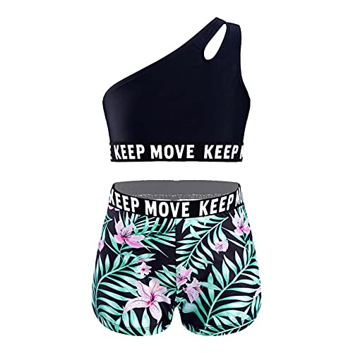 2 pezzi bambini ragazze asimmetricheSpallatop corti con cinturini e altiVitaset di pantaloncini sportivi