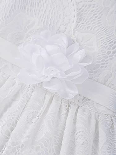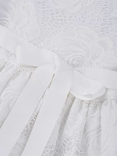 Agoky Vestito Bambina Cerimonia Damigella Compleanno Abito da Ballo per Prima Comunione Senza Maniche in Pizzo con Fiore Ideale per Festa 6-16 Anni Bianco 10 Anni