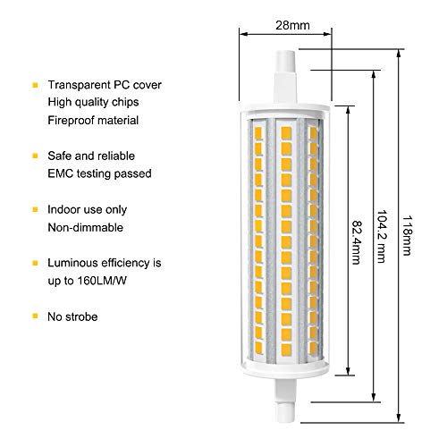 AGOTD R7s 118mm LED 12W Lampada LED, Bianco Caldo 3000K 12Watt Equivalente a 125W r7s Lampada Alogena, Lampadine R7S J118 per Lampada Riflettore Proiettore, Lampada Soffitto, Confezione da 1