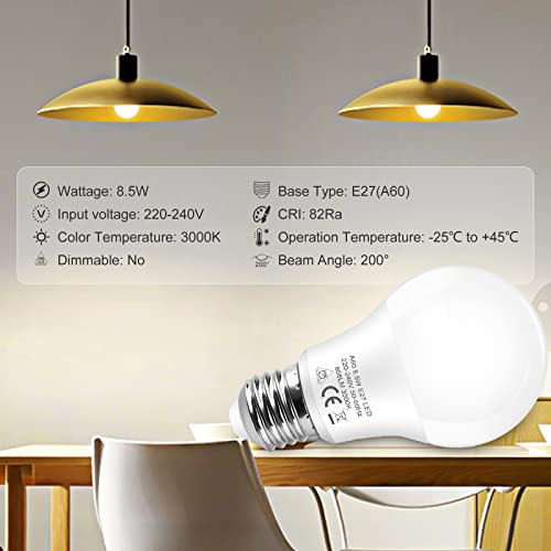 Le lampade a LED AGOTD E27 8.5W hanno un'emissione luminosa elevata e priva di sfarfallio di 806 lumen e una confortevole luce bianca calda di 3000 Kelvin.
