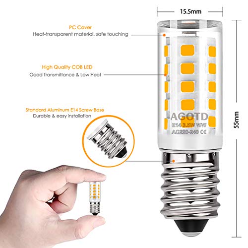 AGOTD 3,5W Lampadina LED E14, Lampade LED Bianche Calde da 3000K, Equivalente a 35W Lampada Alogena, 350LM, AC220-240V, Angolo di visione 360°, Non Dimmerabile, 5 pezzi