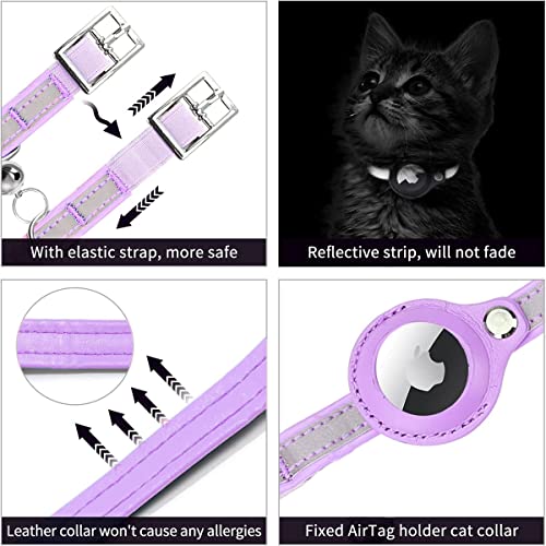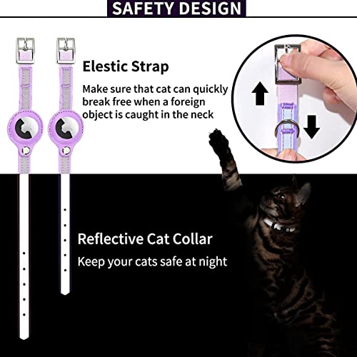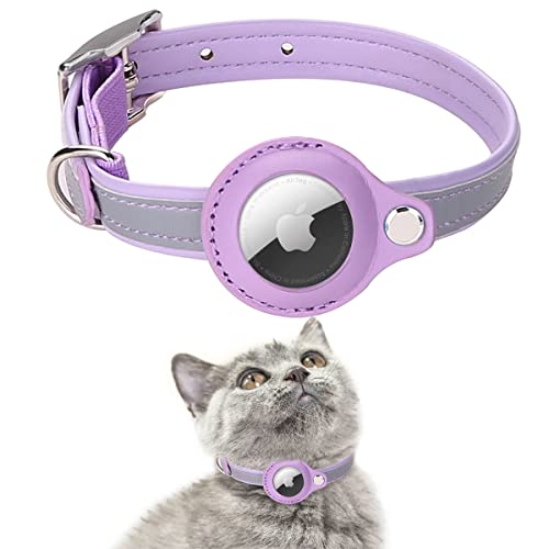 AgoumLux Airtag Collare per Gatti Regolabile Riflettente Airtag Collare per Animali Domestici Compatibile con Apple Airtag, Viola, XS