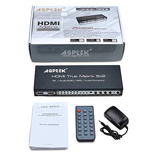 Agptek 4K 6X2 HDMI True Matrix con Funzione ARC & PIP, Estrattore Audio da HDMI, Supporta Impianti Audio 2.0CH/ 5.1CH/ ADV | Uscita SPDIF o Jack 3.5mm classic