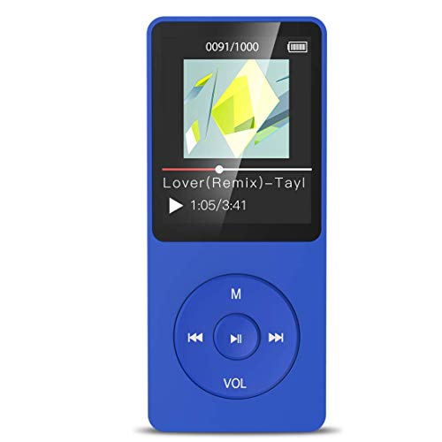 AGPTEK Lettore MP3 8GB Lettore MP3 Portatile con Schermo 1,8 Pollici, Radio FM, Piccolo Musicale MP3 Running Sportivo, Supporto Massimo Memory Card TF 64GB, Blu