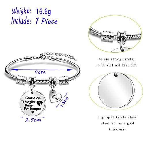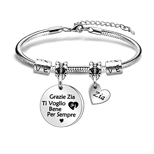 Zia Bracciale Braccialetto da Donna Zia e Nipote Grazie Zia Ti Voglio Bene Per Sempre Acciaio Inossidabile