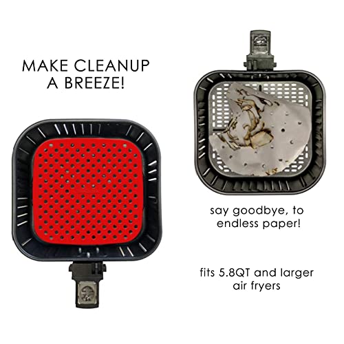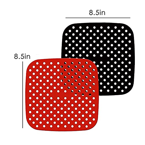 AGRYMER Tappetino per Friggitrice Ad Aria da 2 Pezzi Accessori per Friggitrice Ad Aria Riutilizzabili Quadrati Quadrati da 8,5 Pollici (Nero E Rosso)