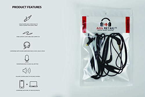 AGSretail Ltd Replacement Audio Cable Compatible with SE215, SE315, SE425, SE535 Earphones. Compatible with Shure CBL-M+-K-EFS, Length 64 -inch, 163cm Detachable Earphone Cable