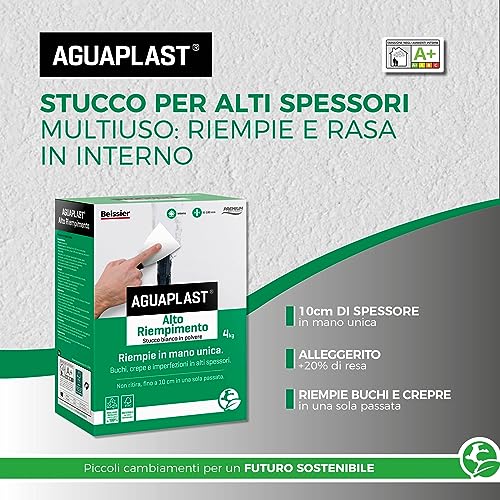 Aguaplast Alto Riempimento polvere, stucco per interni in alti spessori. 10 cm di spessore in mano unica. 4kg