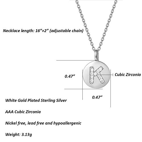 AGVANA Collana con lettera da donna in argento sterling 925 Iniziali Collana con nome alfabeto Collana cz Collana con pendente a moneta da donna Lettera K Lunghezza catena: 40 + 5 cm