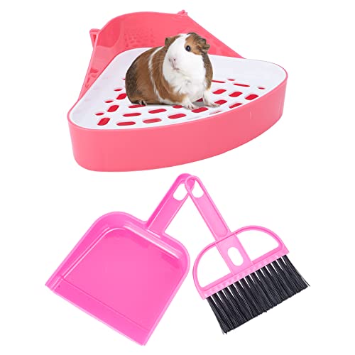 AHANDMAKER WC per Coniglio, Set di Lettiera per Coniglietti con Scatola per Lettiera Angolare A Triangolo Vasino e Mini Scopa e Paletta per Porcellini D'India Furetto Cincillà Conigli Criceti, Roso