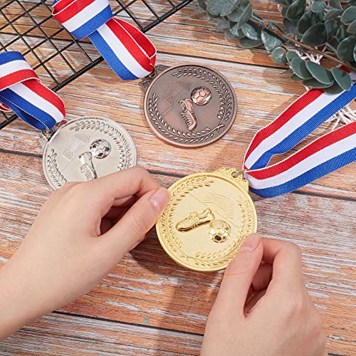 AHANDMAKER 12 Pack Medaglie Sport Game, Premio del Vincitore Medaglie Sportive Medaglie Premio Originali Oro Argento e Bronzo Medaglie Sportive di Calcio con Nastro Nick per Giochi di Calcio Sportivi