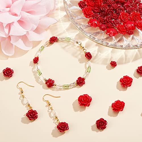 AHANDMAKER 80 Pz Perline di Fiori di Rose, 4 Stili Perline di Corallo Sintetico Tinte Fiore Intaglio Charms Allentate per Fai da Te Braccialetto Collana Orecchino Creazione di Gioielli Decorazione