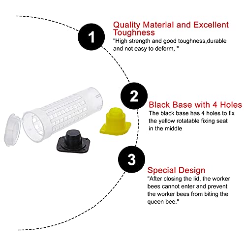 Materiale di qualità realizzato: realizzato in plastica di alta qualità, comodo, leggero e sicuro per le api, e la tazza per l'allevamento delle api è facile da usare per catturare un'ape regina.