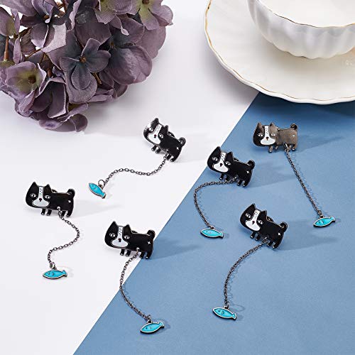 AHANDMAKER Spilla da Bavero Smaltata A Mano, 6 Pezzo di Spille in Lega di Zinco Gatto e Pesce con Pochette A Farfalla in Ferro per Abiti Carini