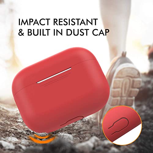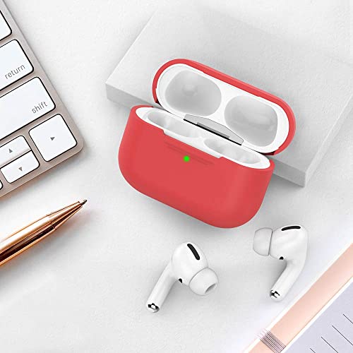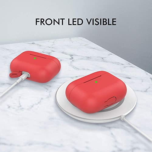 AHASTYLE Case per Airpods Pro Case Cover, Custodia Protettiva in Silicone [LED Anteriore Visibile][Supporto Ricarica Wireless] Compatìbile con Apple Airpods Pro 2019 (Senza Moschettone, Rosso)