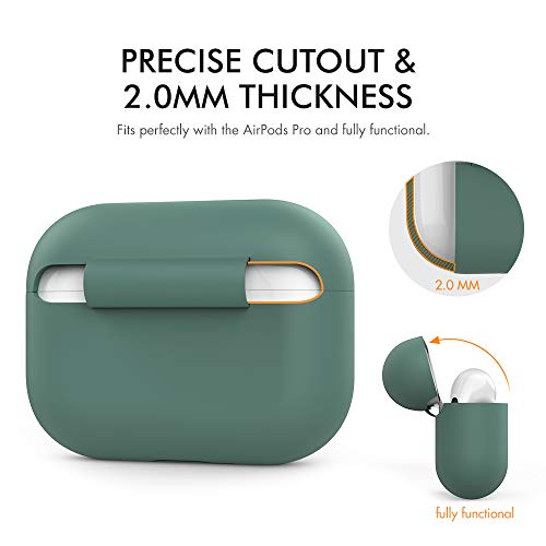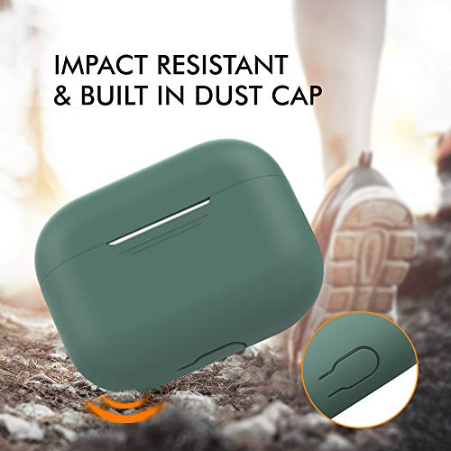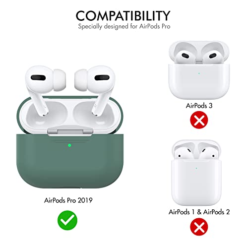 AHASTYLE Case per Airpods Pro Case Cover, Custodia Protettiva in Silicone [LED Anteriore Visibile][Supporto Ricarica Wireless] Compatìbile con Apple Airpods Pro 2019 (Senza Moschettone, Pino Verde)