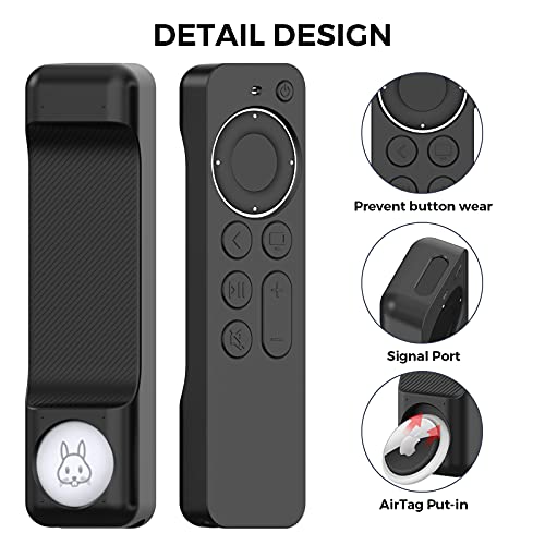 AHASTYLE Custodia telecomando per Apple TV Siri Remote Control 4K 2021 con supporto AirTag non incluso: custodia completa in silicone per Apple TV 4K 2021 e AirTag (nero)