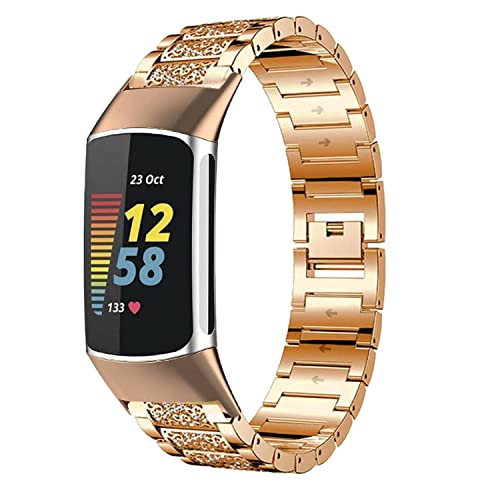 Ahayo Cinturino da donna per Fitbit Charge 5, in lega di metallo con cristalli scintillanti, chiusura rapida, per Fitbit Charge 5 attività tracker (oro rosa)