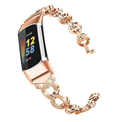 Ahayo Cinturino di ricambio per Fitbit Charge 5, in lega di metallo con cristalli Bling da donna Hollow a sgancio rapido per Fitbit Charge 5 Activity Tracker, Oro rosa
