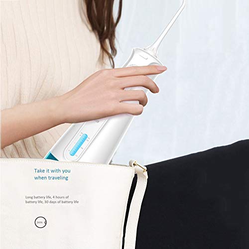 [Lunga Durata della batteria e Design portatile] nostro irrigatore orale ricaricabile con una potente batteria al litio è in grado di essere usato continuamente per 30 giorni una volta completamente carica. L'interfaccia USB disegno di carico è applicabile ad una varietà di equipements ricarica con un sacchetto di immagazzinaggio, perfetta per viaggiare.