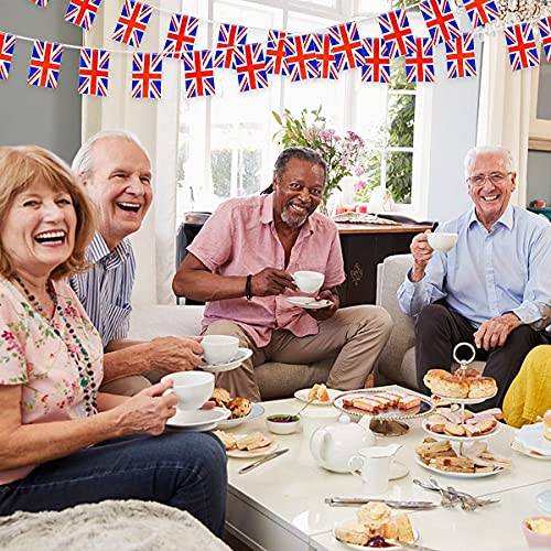 Union Jack Bunting: La bandierina è composta da 30 bandiere rettangolari britanniche. La dimensione di ogni bandierina è di 14 x 21 cm (larghezza x profondità) e la lunghezza delle bandiere è di 10 m. Ottima decorazione per casa, giardino e ufficio.