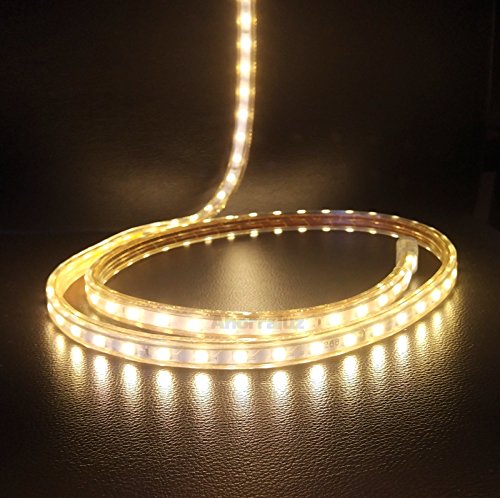 Ahorraluz Striscia LED da 220 V 5050 impermeabile bianco freddo o caldo impermeabile IP67 striscia (bianco caldo, 1 metro + spina)
