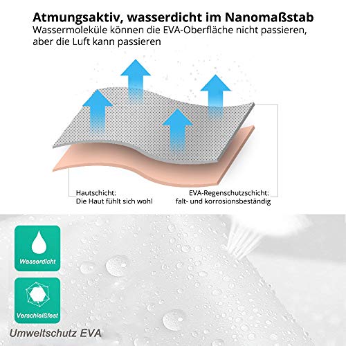 Si adatta perfettamente alla maggior parte delle persone. Misura 145 x 68 cm con cappuccio, con una grande lunghezza sulle maniche e sulle gambe. Impermeabile disponibile in taglie forti (XL e più piccole), perfetto per uomini, donne, ragazzi e ragazzi. È una buona protezione per i viaggi e per scopi generali.