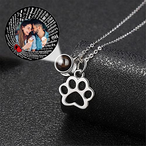 Ahtcftn Collana con foto di zampa di cane con immagine all'interno Collana con proiezione personalizzata per collana da donna Ti amo(Oro,14)