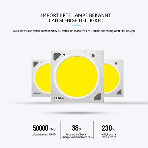 [Super brillante e di alta qualità]: adotta l'integrazione del chip LED CREE 100W per fornire un'elevata luminosità, adotta un involucro in alluminio antiruggine e una struttura ad alta resistenza per migliorare il raffreddamento e la durata, e la sua durata è fino a 30.000 ore ..