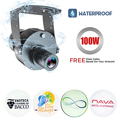 AHWZ 100W LED Gobo Logo Proiettore Luce per Esterni IP65 Impermeabile per Uso Esterno in Interni,Nero,Outdoor