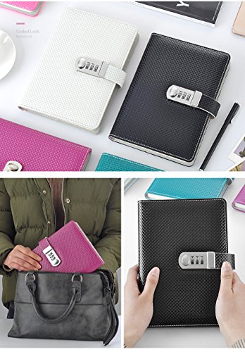 Ai-life PU Pelle Diario Taccuino Progettista Organizzatore con Serratura a Combinazione, Stile di Lavoro a Maglia Formato A5(210x145mm) Fashion Daily Diario Segreto Taccuino, Portapenne