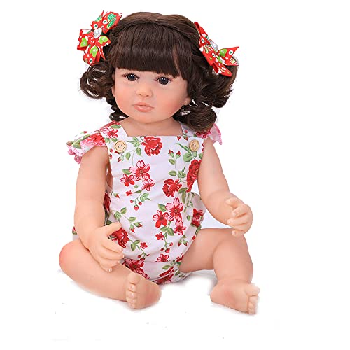 AIBAOLIAN Realistica Neonato Bambole Reborn Femmina Silicone Vinile Reborn Toddler Ragazzo Ragazza Giocattolo Regali di Natale (motivo floreale rosso, tutto in silicone)