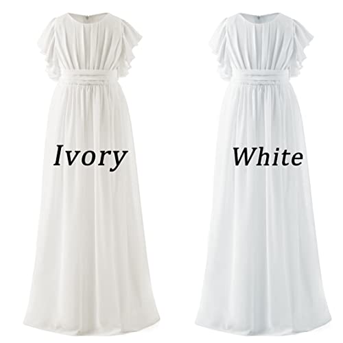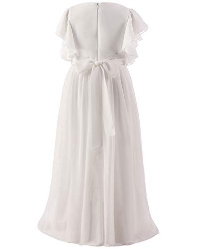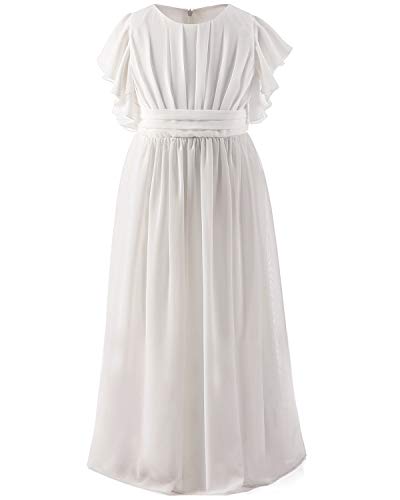 Aibaowedding Boho Abito lungo in chiffon per bambini con cintura e maniche corte a farfalla/vintage chic linea ad A, abiti da comunione, damigella d'onore, avorio, 8 anni