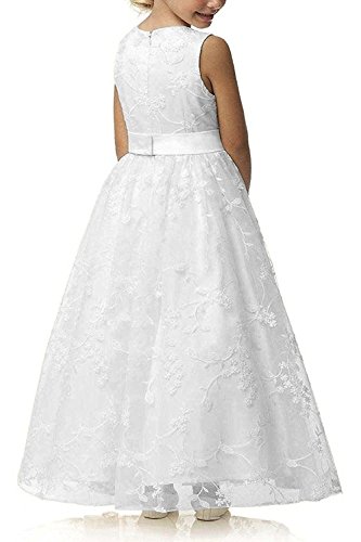 Aibaowedding Chic Abito lungo da comunione per bambini, in tulle ricamato con cintura in raso/boho a linea A, per damigelle d'onore, per ragazze 2-12 anni, bianco, 8 anni