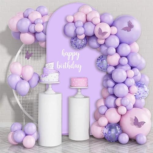 AIBIIN 2.6x6ft solido colore viola forma arco Backdrop Round Top Arco Telaio copertura 2-Sided Fit Backdrop Stand per la cerimonia di nozze festa di compleanno Baby Shower Banquet decorazione