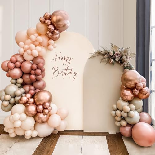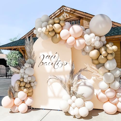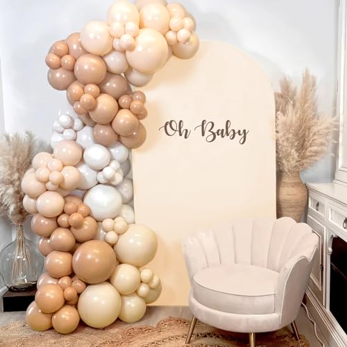AIBIIN 1 x 2,1 m, colore beige tinta unita, a forma di arco, sfondo rotondo con cornice ad arco, copertura su 2 lati, supporto per matrimonio, cerimonia di compleanno, baby shower, banchetti