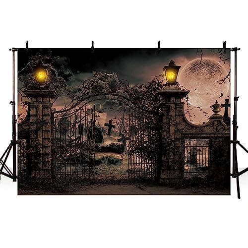 AIBIIN 2.1x1,5 m Sfondo di fotografia di Halloween spaventoso cimitero terrore spettrale desolato cimitero porta di ferro festa di famiglia festa foto oggetti di scena sfondo