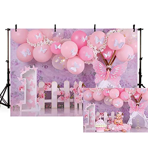 AIBIIN 2,1 x 1,5 m tema boemia sfondo ragazza 1° compleanno celebrazione rosa palloncino fiore bianco farfalla tenda fotografia sfondo boho stile bambini spettacolo torta tavolo decorazione banner