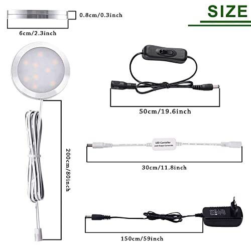 5.Basso profilo & invisibile:La dimensione dell'illuminazione sottile della vetrina è: Diametro: 2.3 pollici, Spessore: 0.31 pollici. L'illuminazione del mobile da cucina arriva all'estetica dopo l'installazione, assicurando che non sporga in modo poco attraente da sotto il mobile.