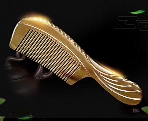 Aibote - Pettine in corno di bue naturale 100% fatto a mano, con incisione bifacciale per capelli districanti, antistatico, per massaggio, per uomini, donne e ragazze, 15 cm
