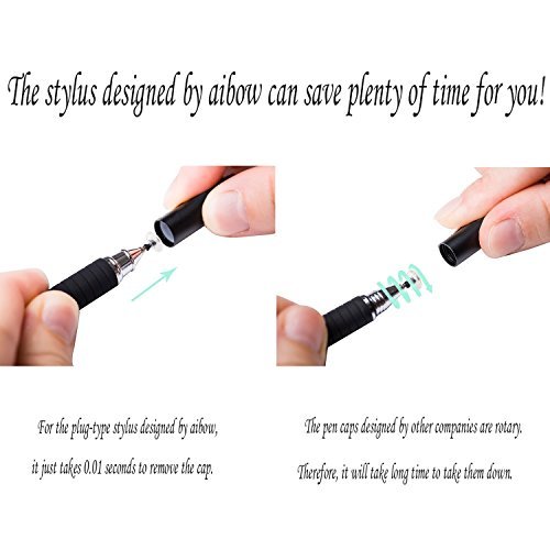 Aibow - Penne capacitive stilo per touch screen, iPad, telefoni cellulari, tablet [punta fine punta disco e punta in fibra 2-in-1] con 4 punte disco sostituibili e 4 punte sostituibili in fibra