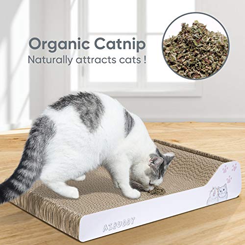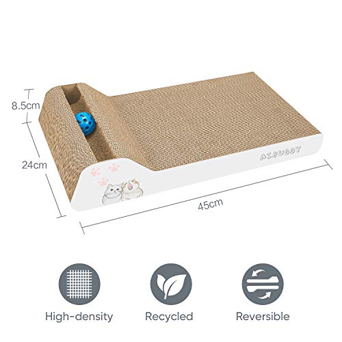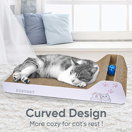 Aibuddy Tiragraffi inclinato reversibile in cartone con palla giocattolo erba gatta [45 x 24 x 8,5 cm, cartone superiore e costruzione]